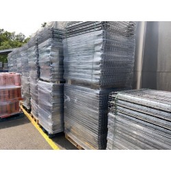Planchers de 880 mm de largeur - 2 renforts Oméga / Bords tombés - Maille 100 x 50 mm - Galva - 500 kg UR / plancher de 880 mm - Charge reprise par lisses et sur palette 800 x 1 200 mm